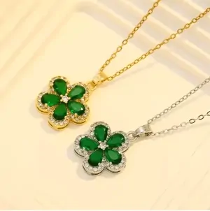 طقم قلادة زهرة من الزمرد والزركون